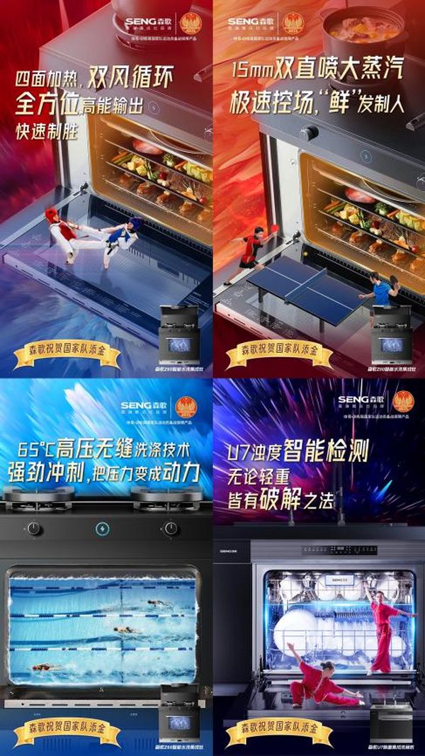 自开年以来,森歌与体育事业紧密联系,亮点频出。2月入选国家体育总局训练局集成灶品牌,不仅彰显森歌品牌硬实力,同时也标志着其产品技术、性能、质量通过官方权威认可。3月,正式与国家体育总局训练局的签约仪式,标志着双方合作迈向全新里程碑。4月,官宣“奥运冠军天团”乒乓球奥运冠军许昕、游泳奥运冠军罗雪娟、击剑奥运冠军孙一文为品牌形象代言人,森歌完成国家级权威背书高端占位。6月,中国建材质量强国行活动以森歌为首发站,三十余家权威媒体代表深入探访森歌智慧工厂,亲身感受冠军品质,进一步夯实了森歌“冠军品牌”“冠军品质”IP的认知。9月,森歌举办的“中国夺一金 森歌免一单丨和森歌一起为中国唱响胜利之歌”、“胜利之歌助威”的热血应援活动,掀起全民热潮。再到今天的“森歌&国家体育总局训练局运动员公寓厨电定制交付”,频频的大动作,进一步夯实其冠军品牌、冠军品质的行业地位。