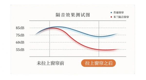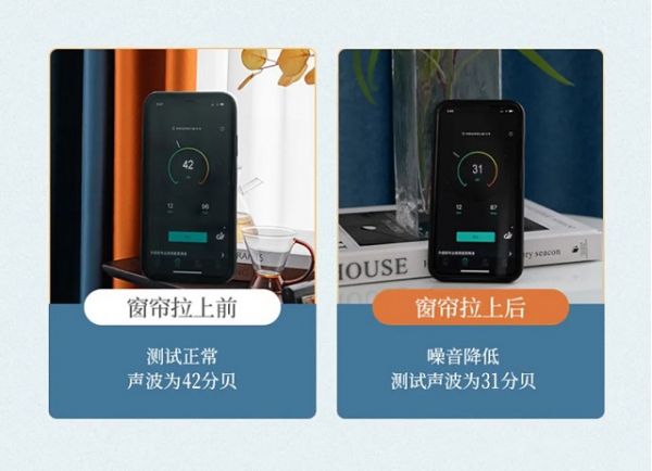 不要小看这10分贝,噪音已经隔绝到很低分贝的时候,增加隔音窗帘的效果非常明显。
