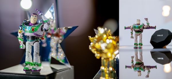 TRICE推出的珠宝画与珠宝雕塑作品,是跨品类的突破,赋予作品更多的情感价值与珍藏意义,其中作品之一巴斯光年珠宝雕塑,周身镶嵌3557颗钻石、1319颗沙弗莱、1423颗紫晶与总重114.4克拉的黄蓝宝、红宝石、蓝宝石等天然彩宝,奢华重工彰显高级品质。全身关节活动通过精密齿轮实现的巧思工艺,为这款华丽珠宝作品注入了动态美学与互动性。
