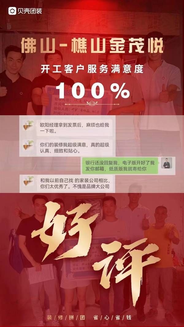 樵山金茂悦项目是贝壳团装在佛山首个开工、首个集体交付的团装项目,不仅赢得业主和开发商的认可,也向外展示出贝壳团装的品质交付实力和优质服务。