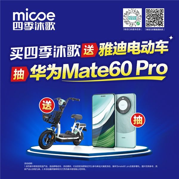 作为空气能热泵领军品牌,四季沐歌凭借过硬的产品品质和良好的市场口碑深受消费者青睐。为了更好迎接旺季市场不断激增的消费需求,同时更好地回馈广大消费者,四季沐歌发起了一场全品类、全渠道、全品牌的“买四季沐歌送雅迪电动车抽华为Mate60 Pro”全国联动活动。