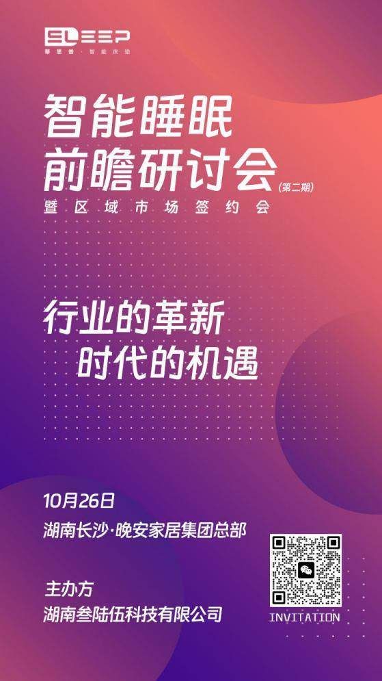 2023年10月26日,湖南叁陆伍科技有限公司将在湖南长沙晚安家居集团总部举办智能睡眠前瞻研讨会第二期——暨区域市场签约会。