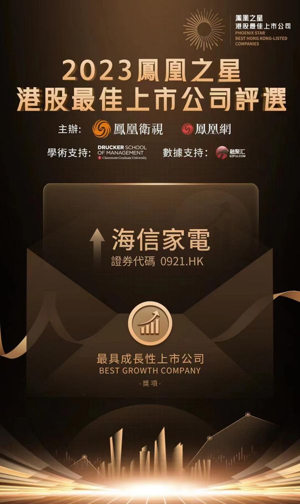 取得优异的成绩的同时,海信家电收获多项荣誉认可。7月,凭借科研投入、科技成果、专利数量等多方面的深厚积淀,海信家电荣获“中国轻工业百强企业”并位居前4位。9月初,最新一期“恒生可持续发展企业指数”系列检讨结果公布,海信家电被纳入2023-2024年“恒生A股可持续发展企业基准指数”,这也是海信家电首次入选该指数;9月末,在“2023凤凰之星港股最佳上市公司”评选颁奖典礼上,海信家电凭借稳健的经营业绩、良好的经营韧性与发展潜力荣获“最具成长性上市公司”。