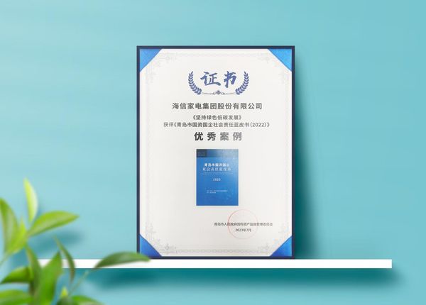 7月,凭借在绿色低碳领域的突出表现,海信家电成功获评《青岛市国资国企社会责任蓝皮书(2022)》优秀案例,展现了在践行社会责任、产业绿色升级等方面的显著成果,起到了企业示范作用。