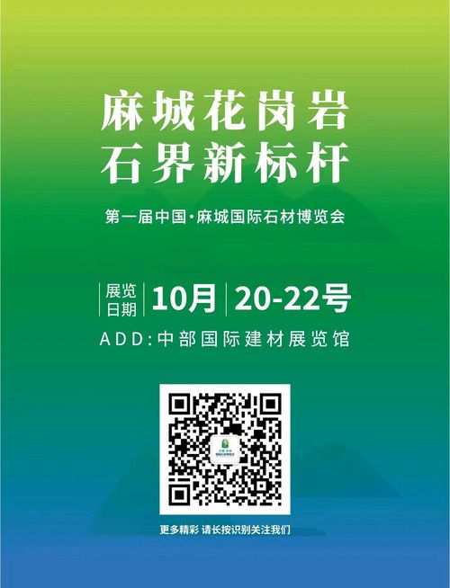 10月20日-22日,第一届中国.麻城国际石材博览会将在中部建材展览馆举行,是继厦门、水头国际石材展之后,高规格、大规模、影响力强的大型石材展会,致力于将麻城花岗石打造成为石界新标杆!本届石材博览会共设国际石材展区、国内石材展区、设计雕刻区、特色展区、室外大型机械展区、论坛区、麻城馆等七大展区,面积超4.7万平方米,参展单位超300家,参展人员超过2万人。同时,邀请全国知名设计师策展、站在国际视野,设计前沿、时尚趋势为您带来一场花岗石盛会,书写花岗石的无限可能。