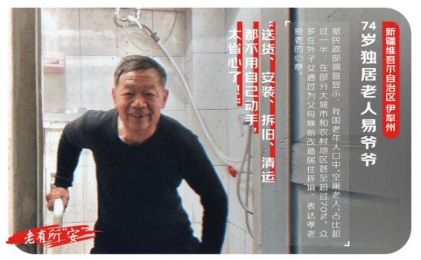 “您以后上完厕所搭着扶手慢慢起来,这样可以缓解头晕,避免摔跤。”新疆伊犁州74岁易爷爷的小女儿,从视频通话里看到卫生间新装好的扶手,安心了不少。老人的三个孩子都已成家,逢年过节才能回来。上次听老人自述坐久了站起容易头晕,马桶坏了还得接水冲厕所,花洒出水也有问题,儿女们担心不已,赶紧在京东下单了扶手、马桶、恒温花洒及安装服务,第二天安装师傅就上门,从送货、安装、拆旧、清运一条龙服务让卫生间焕然一新,非常省心。