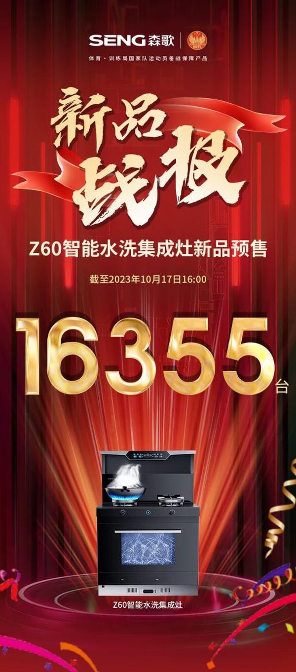 新品类的出现,势必得到业内关注、市场观望。但显然,森歌没有给市场太多的“观望时间”。2023年,行业首款蒸烤内胆智能水洗集成灶——森歌Z8智能水洗集成灶上演了“上市即爆”的现象级热销。在今年618开门红中,森歌新品Z8智能水洗集成灶热销出圈,荣登智能水洗集成灶品类TOP1,日均销售达到了200+。而在今年9月展开线下销售的Z60智能水洗集成灶更是斩获全渠道销量16355台的战绩(截止10月17日16:00)。
