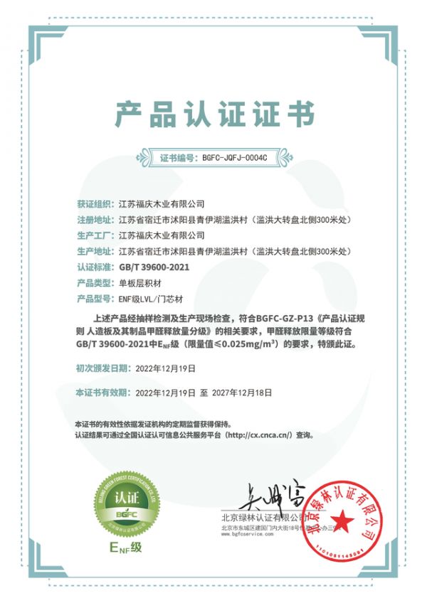为实现“双碳”战略,满足市场需求,福庆LVL将“为世界制造绿色环保建材”作为企业使命。福庆LVL联合一家研究所,三所高校,经过65次工厂测试,18次专业改进,研发出ENF级树脂胶黏剂。福庆LVL将树脂胶黏剂应用于门芯材生产,引领LVL产业环保新标准。