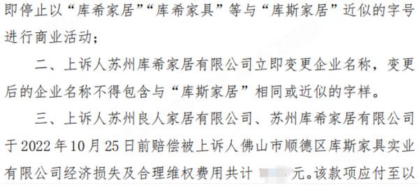 本来,违法事实清楚的苏州库希公司应该尊重法律审批结果,拿出切实行动进行悔罪改罪,立即停止对库斯家居的商标侵害、停止不正当竞争等,但事实上,该公司对自身违法行为缺乏必要的自省自警,于2022年10月10日上诉后,再次败诉,法律再次庄严地维护了库斯固有的知识产权的尊严(见下图判决书部分截图)