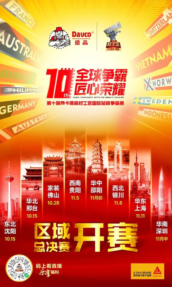 第十届西卡德高好工匠国际贴砖争霸赛区域总决赛正式鸣锣开赛。
