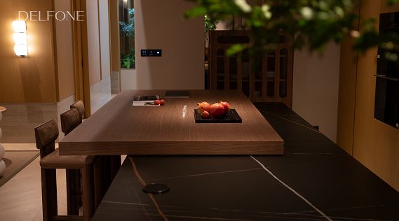 岩元素,自古以来都是建筑装饰的核心材料之一,特别是在西方建筑装饰领域中,理石的艺术美学代表整个西方殿堂级的高度;在给人的感觉中,它是理性、刚硬、安全的,给人可靠的信赖感。木元素:自古以来也是建筑装饰的核心材料,特别是东方建筑装饰领域,木作的艺术美学代表了东方文明高度,是文化和品位传承;在给人的感觉中,代表感性、柔美、温暖的,给人一种温暖的舒适感。德利丰岩木定制将高端环保的岩板与温暖舒适的木进行结合,将木的柔美与岩的硬朗碰撞结合恰到好处。