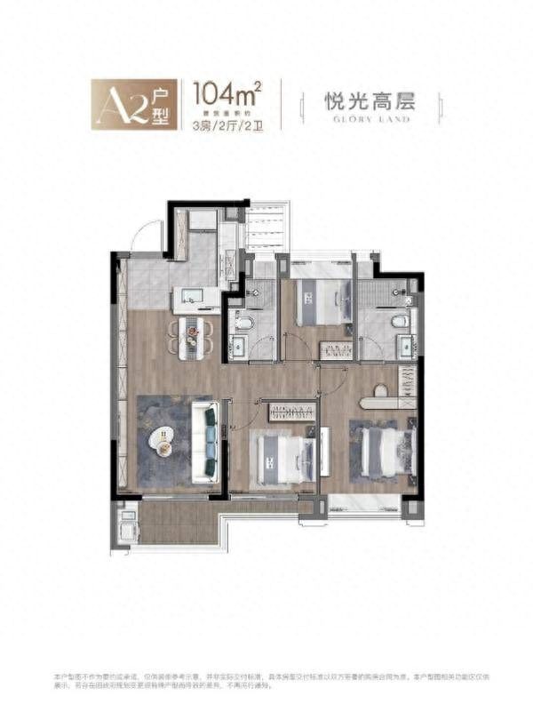可分可合的家就像一个“小社会”,每个家庭成员需要在一起交流的场所,同样需要独处的私密空间。因此,好户型是可以容纳更多琐碎,分割动、静两种时空的。金地西郊·悦章建面约104㎡的三房户型,整体动静分区划分的十分合理。