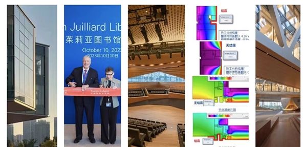 教学楼建筑外部材料和包材包括⾼性能玻璃组件、暖框技术的幕墙隔热毯创新科技、喷砂不锈钢、玻璃纤维混凝⼟(GFRC)和Parklex⽊纹板。中堂中的各个场馆墙壁均采⽤玻璃纤维混凝⼟包覆。廊桥采⽤三层玻璃的中空玻璃单元(IGU)围护系统,从中堂和公共空间即可看到廊桥中的活动。中堂设有4个装有天窗的中庭,便于阳光直达位于地下层的咖啡馆、园林座椅和倾斜式大看台,也为通常种植在户外的植物提供充⾜的光照。为了面对建筑在大面积光照环境下达到低碳节能的绿色环保标准的设计挑战,设计采用了⽔循环冷却辐射地板和暖框技术幕墙隔热毯等高新技术方案,以充分解决建筑空间内的气候调节功能和保温隔热效果,提⾼了建筑内的空⽓质量、舒适性、低碳节能性能。