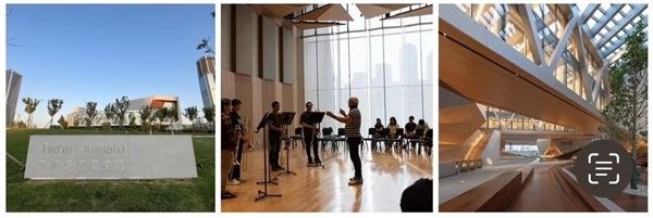 天津茱莉亚学院新校园位于滨海新区,占地32,500m²,由著名建筑事务所Diller Scofidio + Renfro设计,是一座集演出、排练、研究和互动展览于一体的艺术中心。DS+R建筑事务所曾于2009年负责了标志性的纽约茱莉亚学院的扩建。天津茱莉亚从设计理念上结合了天津城市文化内涵,与纽约校区建筑交相呼应。天津茱莉亚学院改变了音乐教育的常规教学环境,从玻璃廊桥延展到公共空间,将建筑与周围的公园融为一体,体现了透明和开放的理念。