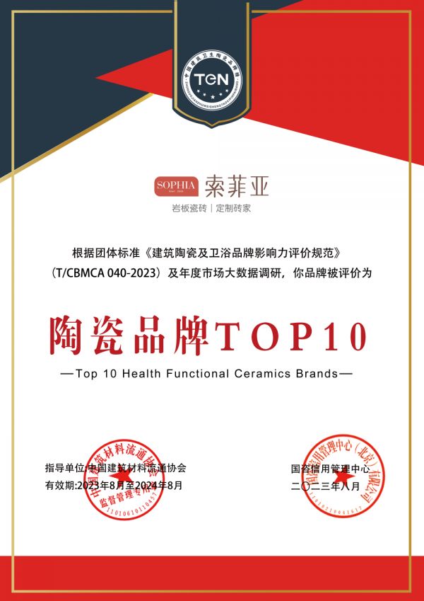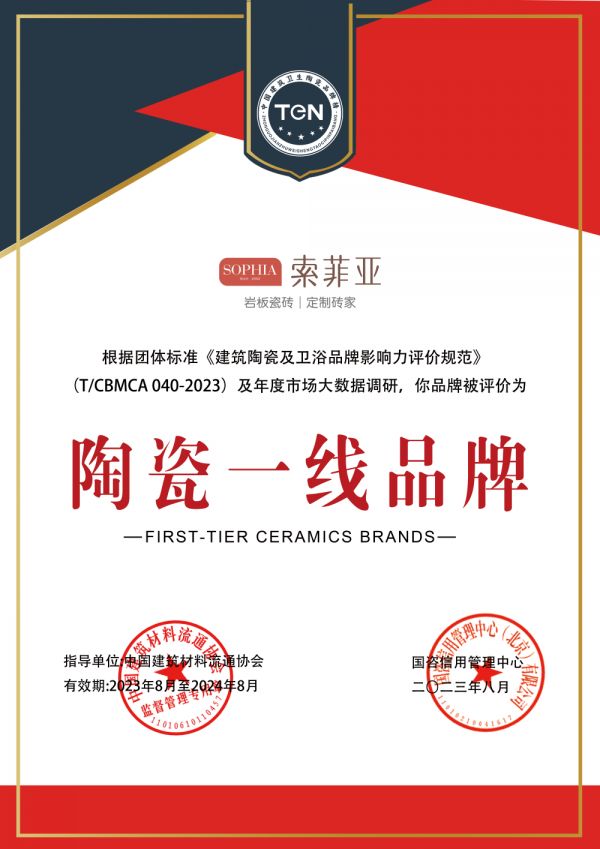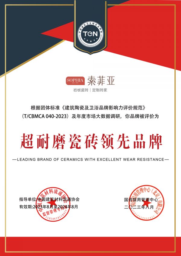 荣誉不仅是对努力的肯定,更是对未来的激励。我们相信 ,按照索菲亚瓷砖既定的企业发展战略,继续以市场为导向,以产品为核心,发挥品牌优势,与同行共同发展,帮助行业实现可持续的高质量发展,打造消费者满意、值得信赖的陶瓷品牌。