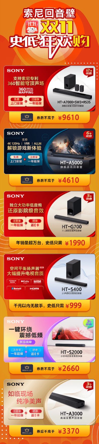 索尼回音壁分分钟带来沉浸式环绕音体验,这次双十一活动力度很大,趁着双十一期间快入手一款最适合自己的索尼回音壁吧,真的很划算~