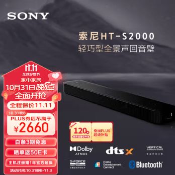 11.11大促期间HT-S2000在京东Plus券后只需2660即可入手,还享受3期免息加延保365天,晒单就返50元京东E卡,音质无妥协,价格更贴心,大家千万别错过~