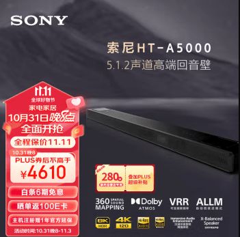 如果你的预算再高一些,或者对影音体验的品质希望更好一些,那么完全可以考虑下更高阶的HT-A5000。A5000可以说是为游戏爱好者量身打造的回音壁,搭载有HDMI2.1端口,能够很好的支持4K 120Hz、VRR、ALLM,有效降低延迟,提升声音细节,帮助玩家实现更好的听音辨辩位,赢得游戏胜利。A5000内置5.1.2声道的喇叭系统,支持杜比全景声和DTS:X格式,具有宽广的声场和包裹感的环绕效果,兼具清晰细腻的声音细节表现。除此之外,A5000可以搭配低音炮SW3和后环绕RS3S组成HT-A5000+SW3+RS3S套组,即可实现索尼的独家专利黑科技“360智能穹顶声场”,摆脱传统音响需要严格摆位的限制,适配不同的家居环境,通过智能测距优化,将声音优化至贴合使用空间的理想状态,生成多个真实发声的智能扬声器,轻松营造出360度沉浸式声场效果,能够带来更加立体的环绕感音效,让玩家的游戏体验感更好。此外,也可以搭配索尼BRAVIA电视启动“中置声场同步模式”,进一步呈现更高水准的沉浸式体验。喜欢和家人在一起观影打游戏的伙伴们福利来了,11.11大促期间HT-A5000京东Plus券后只需4610元,最强游戏套装533也只需7330元,还享受6期免息加延保365天,赠安心装免费上门安装服务,晒单就返100元京东E卡,可以说索尼这一次给到的优惠诚意满满,如果你喜欢玩主机游戏,想让游戏体验更上一层楼,那么不要再观望了,现在就是最好的入手时机!
