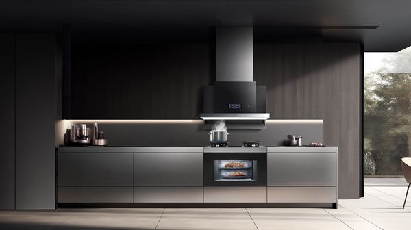 方太集成烹饪中心Y系列采用齐平隐藏式油杯,油腻感从此彻底消失;纯平一体化蒸烤箱,采用整机无把手设计,棱角分明硬朗有序,于简洁中尽展力量和秩序感。