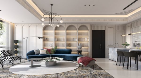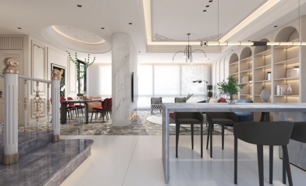 设计与生活时而成正比,时而构成反差,在舒适自在的不变量下,二者关系微妙自如,随时可以发生转变,风格、色彩更在宽泛的范围内融通。本案例整体设计融入奢石高定的美学内涵,柔和纯白调的清丽与金色调的富丽,以华美、精奢散发着奢石高定的艺术美感。欧若拉精工奢石在意式浪漫中加上高定精奢感,以符合当代人的审美。
