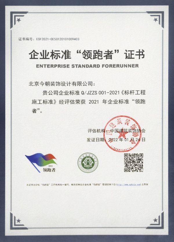 因企业公开标准严于国家标准、行业标准的比例达到20%以上,今朝装饰还曾被中国建筑装饰协会授予企业标准“领跑者”的荣誉。而同时,今朝装饰不仅自己持续升级工艺技术,更是不断向外发布老房装修标准以及老房研发成果,促进行业工艺技术革新,也让广大业主的家装工程品质再上台阶。