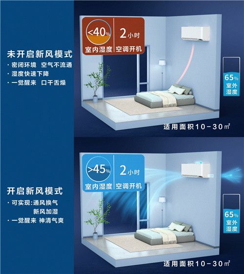 TCL新风空调洞察用户痛点,通过改善室内湿度、实现室内外空气交换、增加室内氧气含量等方面解决了传统空调带来的不适体感。新风空调将新鲜空气引入室内,能够改善室内空气湿度,当室内湿度适中、温度适宜时,可以减少口干舌燥的情况发生。同时,相较于传统空调房,即便在紧闭门窗的环境下,新风空调也能有效排出室内的浊气,实现室内外空气交换。这样人们在睡醒后可以感受清新、无异味的室内环境。此外,新风空调通过引入新鲜空气,增加室内氧气含量,从而让人们呼吸更加顺畅不缺氧,充足氧气供应促进大脑血液循环,使人们在睡醒后保持头脑清醒、思维敏捷。