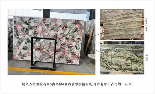 从多家石材市场走访发现,全国多个市场出现了一批板面凌乱、尺寸不规整的冷翡翠,其价格远低于纯冷翡翠大板。其中不少买家提到,在各平台上看到的冷翡翠图片看上去很像,如果不到场看货对比,差一点就上当了。