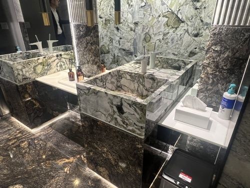 2、由其他大理石掺杂在一起拼接而成的“不纯”的冷翡翠;