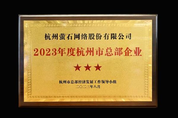 2023年度杭州市总部企业名单公布,萤石网络获选三星级总部企业