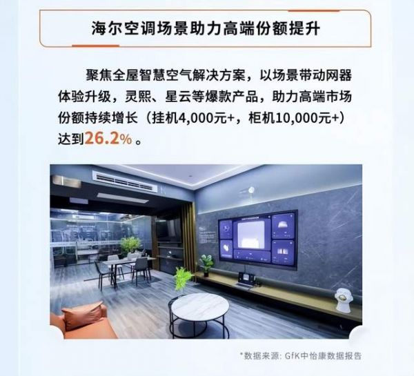 在持续稳增长的业绩上,快速增长的空调业务,成为海尔智家的一大增长亮点。财报显示,海尔家用空调高端(挂机4000元+,柜机10000元+)份额持续增长达到26.2%,增速远超行业平均水平。