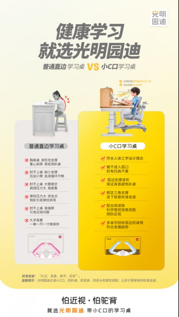 一款专业的学习桌可以陪伴孩子多年,但陪伴孩子成长的前提一定是可以帮助孩子健康学习。已经2023年了,如果还用国家针对使用直边桌要保持坐姿而指定的“三一”标准来论证弧边桌不符合国家要求,岂不是在用过时的、针对特定产品(直边桌)的标准,来评价更符合人体工程特点的、更满足儿童成长发育需要的弧边桌?所以家长们给孩子选择学习桌时一定要擦亮眼睛,从多方去查证品牌的口碑和产品的品质,让孩子健康成长。