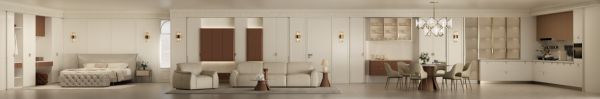 比如顾家最近所推出的《午后巴黎一体化整家》全新系列,不仅采用当下深受年轻人喜爱的法式奶油风,而且全屋软体、配套、木门、护墙更是延续一体化研发设计思维,从设计之初,将空间中的所有细节进行合理搭配,比如颜色上均采用优雅白与温暖棕进行搭配,材质上沙发与软床均采用纳帕皮面料,且都采用波浪层叠的肌理,而木门与护墙更是与柜类在造型上做进一步统一与呼应,打造门墙柜一体、定软一体、橱衣一体的一体化整家方案。