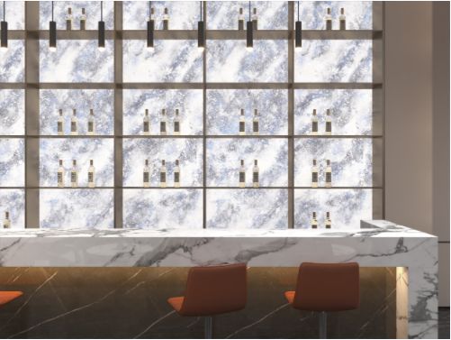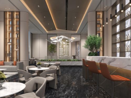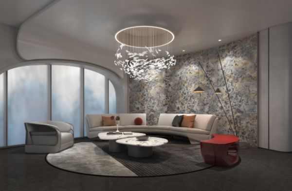 在整体方案的设计中,以“低调的高贵”为艺术创作精神,结合场地的整体结构进行设计延展,以奢石高定划分区域结构,打造简约而温情,纯粹而典雅的公共场域,以此表达现代“奢贵主义”。