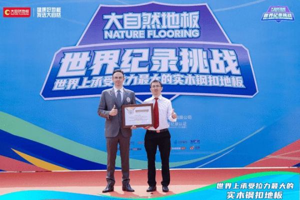 10月25日,大自然家居旗下品牌大自然地板在亚洲第一牌坊·佛山顺德顺峰山公园,以最大12806N的拉力,成功创造了“世界上承受拉力最大的实木钢扣地板”世界纪录,备受瞩目。