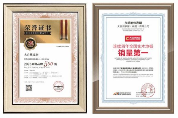 大自然家居的品牌价值遥遥领先,当前国内有超过5000家统一授权、统一形象的终端门店,连续六年入围“亚洲品牌500强”榜单,2023年品牌价值更是攀升至876.12亿元。