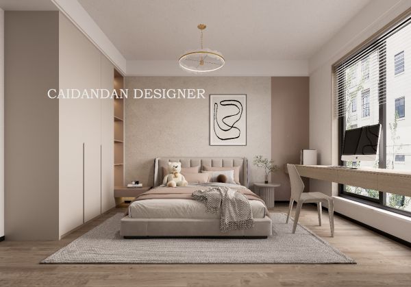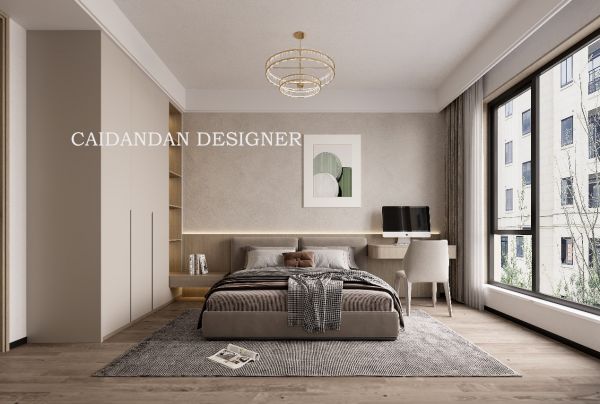 主卧用材质与色彩的呼应来营造视觉效果,大面积的留白让卧室充满呼吸感与松弛感,简单的平顶搭配风扇吊灯,背景墙处的半墙造型丰富空间的层次,用简约耐看的设计还原睡眠空间的纯粹和安逸;窗外的景色既安静又疗愈,轻巧的纱帘引入光线,搭配原木色的家具,将自然感和氛围感贯穿到每个卧室细节上,干净清爽百看不腻。