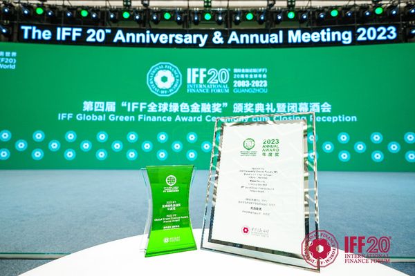 近日,由广东省人民政府、广州市人民政府和国际金融论坛(IFF)共同主办的国际金融论坛(IFF) 2023年全球年会(暨IFF 20周年全球年会)和第四届“IFF全球绿色金融奖”(以下简称绿金奖)颁奖典礼隆重举办。