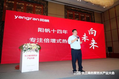 不仅如此,为了让与会嘉宾对热泵发展有更深入认知,以及阳帆在热泵发展中对行业做出的贡献,浙江阳帆节能开发有限公司副总经理王凯峰还在会议现场向与会嘉宾做主题发言,全面阐述阳帆在热泵热水领域所做出的努力,展示阳帆全系列的产品矩阵,以及阳帆在热泵热水领域所取得的成绩。