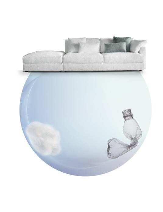 Ofelia是由GRS(全球回收标准)认证的再生棉所打造。而由回收的PET纱线编织而成的雪尼尔面料Ariel,则以其触感的柔软和面料的出众耐用性脱颖而出。同样来自于GRS认证,微短绒的纤维是由可再循环的瓶子和聚酯制成。该纤维的最小厚度为空气自由循环创造了良好的环境,确保了最大的透气性,具有良好的弹性恢复能力并持久耐用。