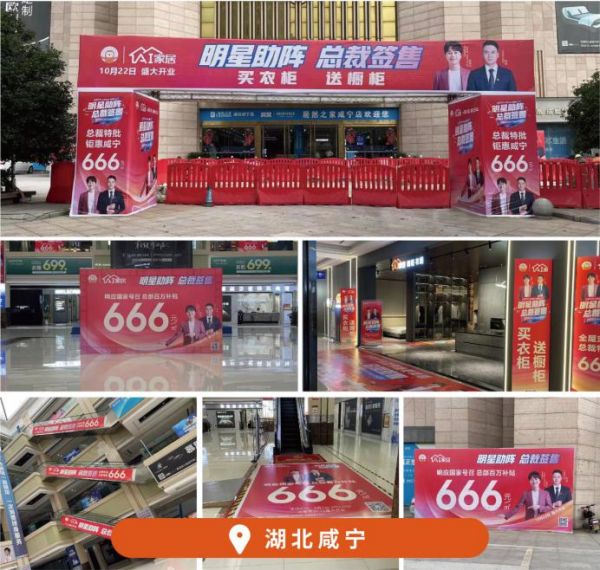 AI家居全国经销商快速响应公司号召,以湖北、广东、山西、甘肃、江西、江苏等城市抢先发力,全面上样活动物料,以点带面、以城联城,辐射周边乡镇地区,通过终端门店活动氛围打造,多种形式的广告投放、地推活动,线上线下造势宣传,触达终端消费者,为活动强势引流。