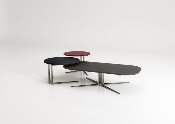 SAINT-GUILLAUME 咖啡桌有三种不同的尺寸。结构由不同颜色和表面处理的金属制成,三种尺寸的桌面表面处理各不相同,有木质和漆面两种。