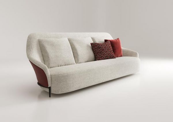 这款沙发有两个或三个座位可供选择,采用双色设计:正面采用纺织品或皮革装饰,背面则采用布里克牛皮生态皮革。框架有多种木质可供选择:美国胡桃木哑光、黑咖啡竹哑光、深色染色橡木或灰色染色橡木哑光。SAINT-GUILLAUME 扶手椅也采用了相同的材料,从而在坐椅元素之间营造出一致的美感。