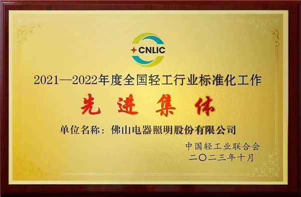 10月31日,中国轻工业联合会在北京召开2023年全国轻工行业标准化工作会议,会议宣读了2021-2022年度全国轻工行业标准化工作先进集体决定。凭借在标准化工作上的累累硕果,佛山照明荣获“全国轻工行业标准化工作先进集体”称号。