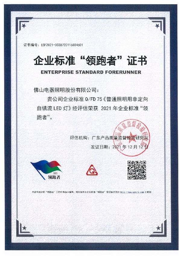 在高质量发展的时代,先进的标准是企业不断提升产品质量与服务的动力,也是企业加快产业升级的助力。佛山照明始终秉承“只有高标准才有高质量”,用标准推动企业做优做强,未来将继续深入推动自主创新技术与标准相结合,加快科技成果标准转化,为行业发展提供资源支持、弥补技术空白,助力高质量发展。