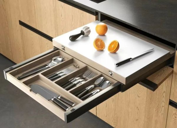 Yes!不少小伙伴都会在下厨时因操作空间有限而苦恼,所以,在前期定制橱柜的阶段,我们不妨多做一个可随时取用的伸缩台面,灵活度高,仅占据一个抽屉的位置,就能在日常备菜时发挥巨大的作用。