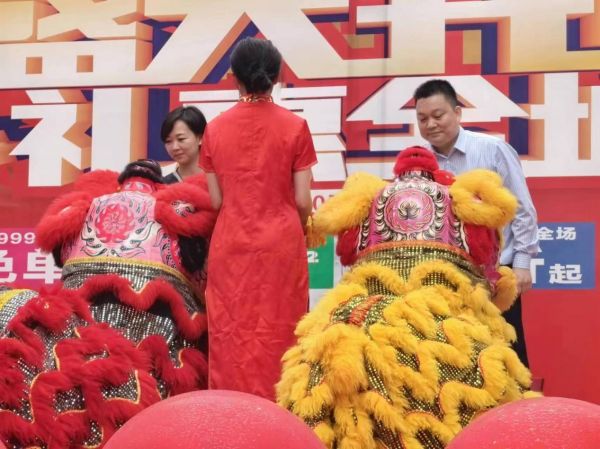 ▲广西百色市工商联副主席陈莹、能强瓷砖百色优秀服务商黄绍林共同为醒狮点睛