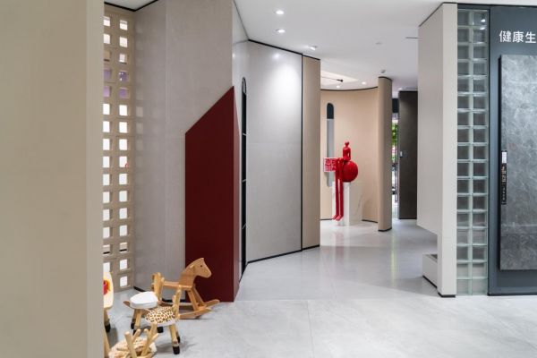 能强瓷砖百色旗舰店店面面积超500m²,展厅设计由能强瓷砖总部团队全程跟踪设计,秉承匠心理念以艺术展示的触笔再次探索不同于以往的空间体验,保持沉稳、简洁调性的同时充满灵动感,在色彩格调、产品展示、空间场景体验上优化升级,展厅已经不再是单一的选材场所,而是融合了场景体验、艺术欣赏和社交接待等多重功能。