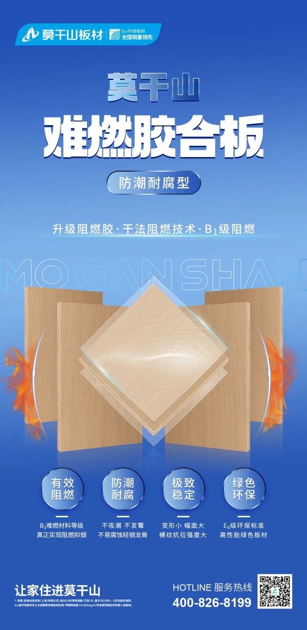 莫干山研发的干法阻燃技术,采用独特的无机阻燃剂与胶黏剂复配工艺,实现了阻燃与胶合的完美结合,为全屋安全稳固提供更好的保障。