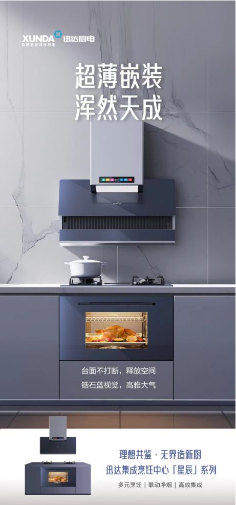 整体来看,迅达厨电以消费需求为导向,推出符合用户需求的集成烹饪中心星辰系列,重塑厨房空间与美学秩序,并打造更高效、更智能、更多元的全新烹饪体验。让厨房不止是美食加工的场所,更是满足烹饪乐趣的悦己之地,以及具备交际属性的社交空间。