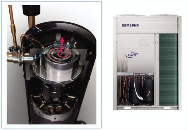 三星中央空调通过对技术不断的升级,推出高效的Flash Injection气液增焓技术,通过抽取部分中间的压力冷媒,将主循环冷媒进行过冷却提高效率的同时,增加了压缩机的排气量,也有效抑制了排气温度过高,使系统在严寒气候下制热能力提升,在制冷时亦可增加冷媒量。并自动调节压缩机频率,有效提升系统满负荷及超低负荷工况下的系统效率,体验出色的热力。